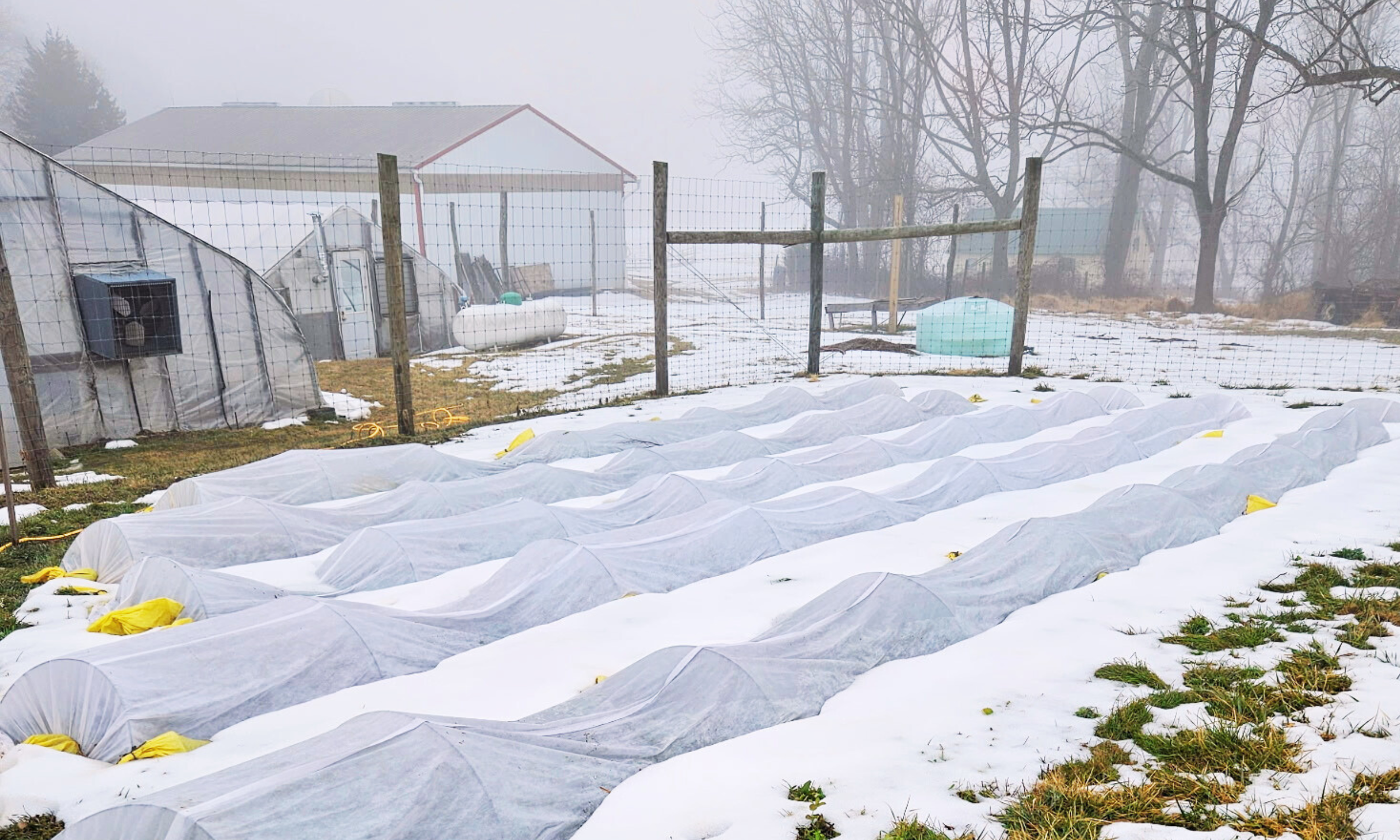 However you choose to fill out the remaining weeks of winter, rest assured that the flowers are coming soon. While we haven’t yet peeked under the row covers of the field-grown annuals (see introductory photo), the plants in the tunnels are eagerly awaiting their temperature and light cues—yep, a little nod to the conference and learning more about the science of flowering plants—to start doing their thing. See below for proof!